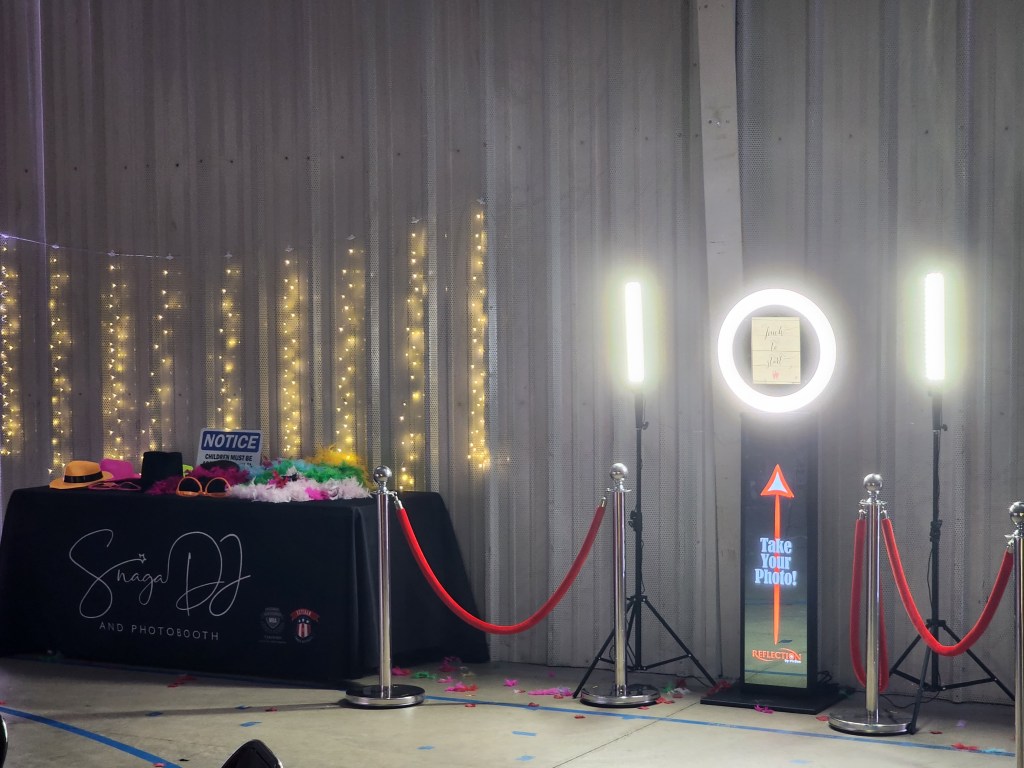 Our photobooth with your custom theme. Your guests can text the photos to their phone. Includes Digital Props, Digital Backdrops, a Link to the Public Gallery. Single Photos, Gifs, & Boomerangs.